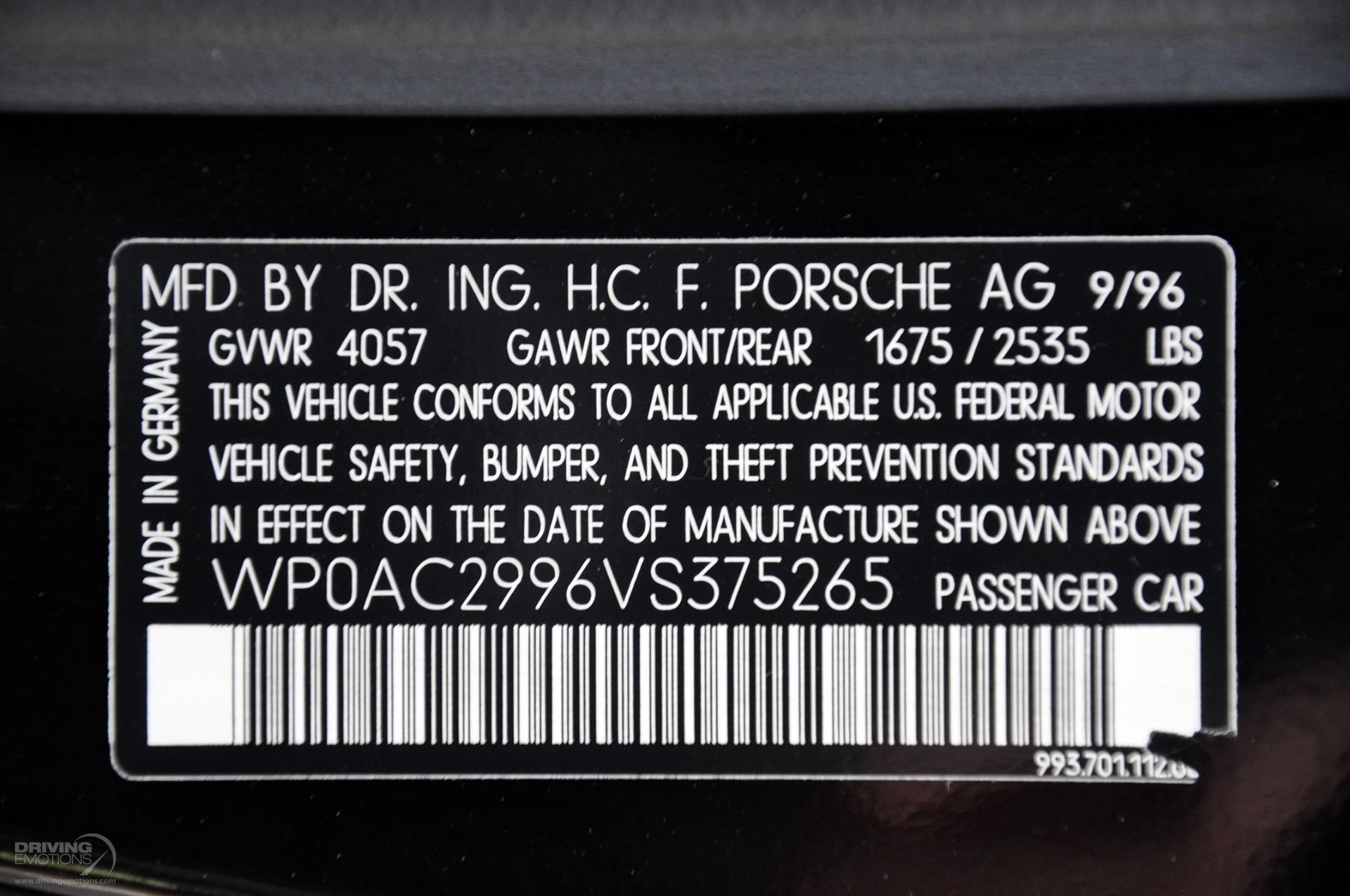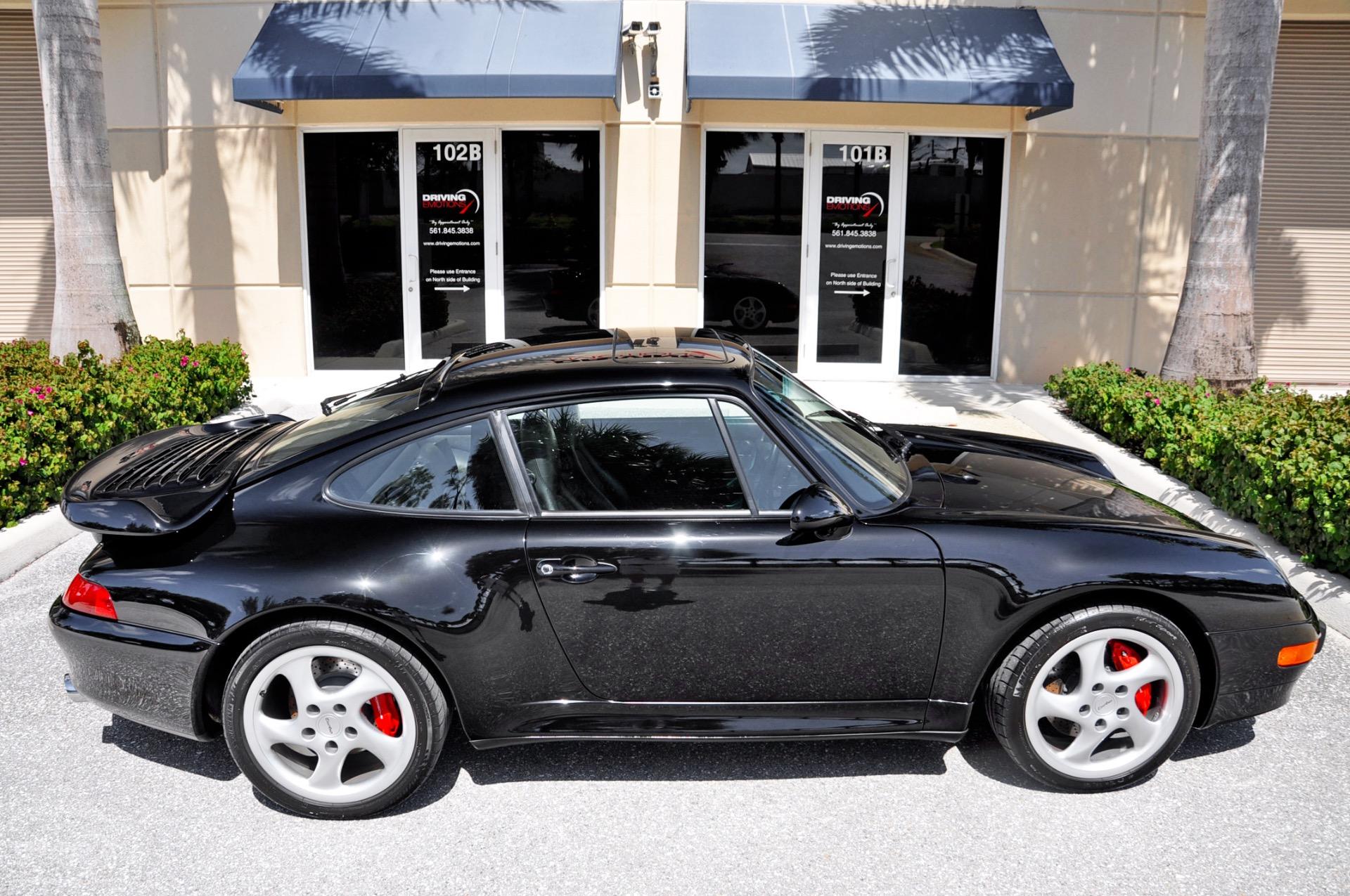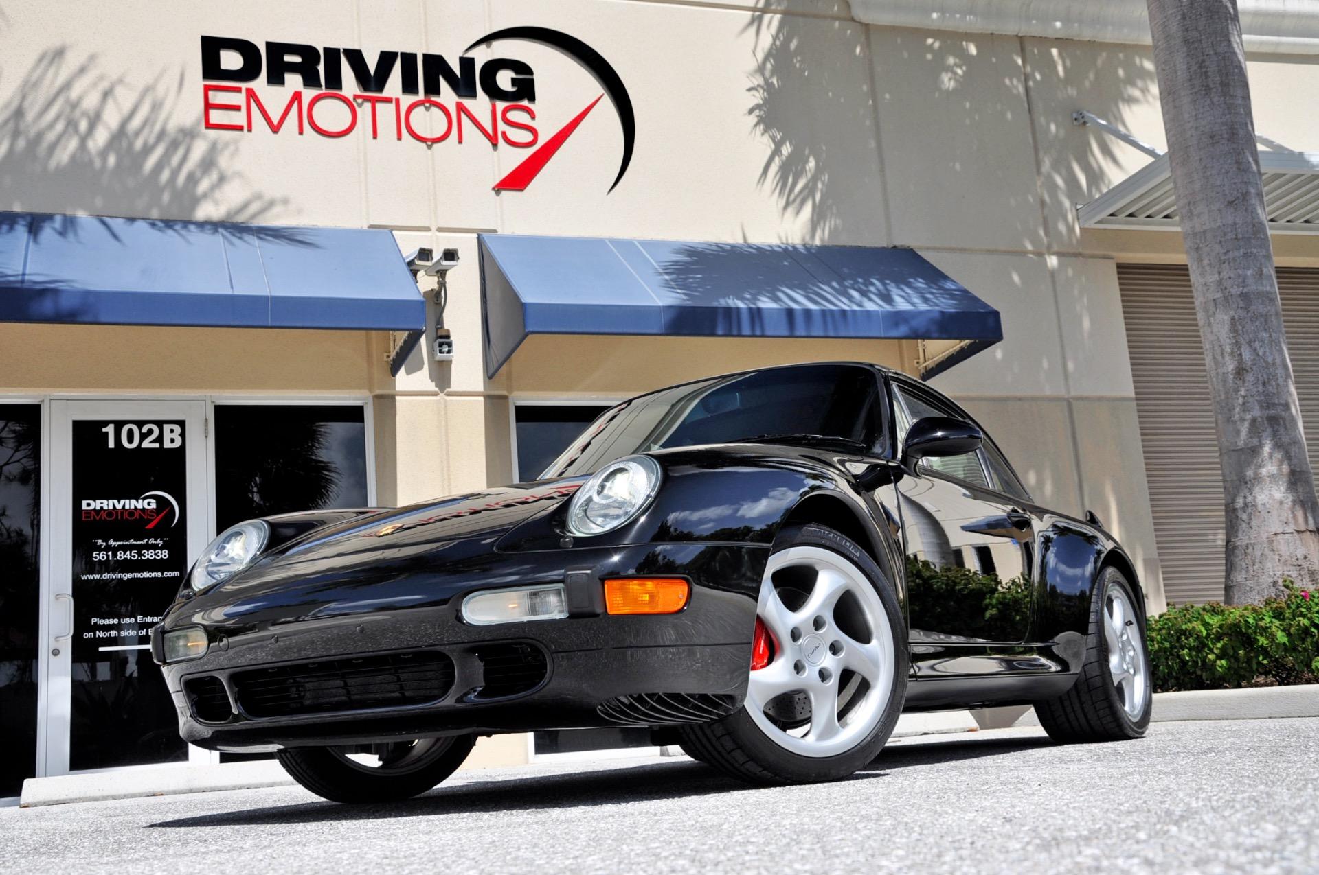 1997 Porsche 911 993 Turbo!! Black with Black Leather Interior! Only 13,764 pampered miles! Very Low Mileage!! This Low Mileage Sports Car is absolutely stunning and is kept in our In-Door, Climate Controlled Showroom! You will NOT find a Lower Mile 1997 993 911 Turbo like this on the market today!! The Color Combo on this Porsche Turbo is Truly Stunning! This 1997 Porsche 911 Turbo comes Factory Loaded with 6-Speed Manual Transmission, Factory Porsche Turbo Wheels, Red Brake Calipers, Electric Sunroof, Rear Window Wiper, Xenon Headlamps, CD Changer in front bonnet, Porsche Stereo with Cassette, Oval Chrome Exhaust Pipe Tips, Aluminum and Leather Shift Handle, Aluminum and Leather Brake Handle, Porsche Crest in Front Headrests, Black Supple Leather Interior, Plus Much More!! Porsches Twin-Turbocharged, Flat 6 Engine produces approximately 408 HP at 5750 rpms and 398 Ft. Lb. of Torque at 4500 rpms and can sprint from 0-60 MPH in approximately 4.4 Seconds!! This 1997 Porsche 911 993 Turbo is in stunning condition and is kept in our in-door showroom and ready for immediate delivery! Please contact our experienced sales team. Please feel free to contact our Showroom with any questions at 561-845-3838 to find out more information. Driving Emotions.