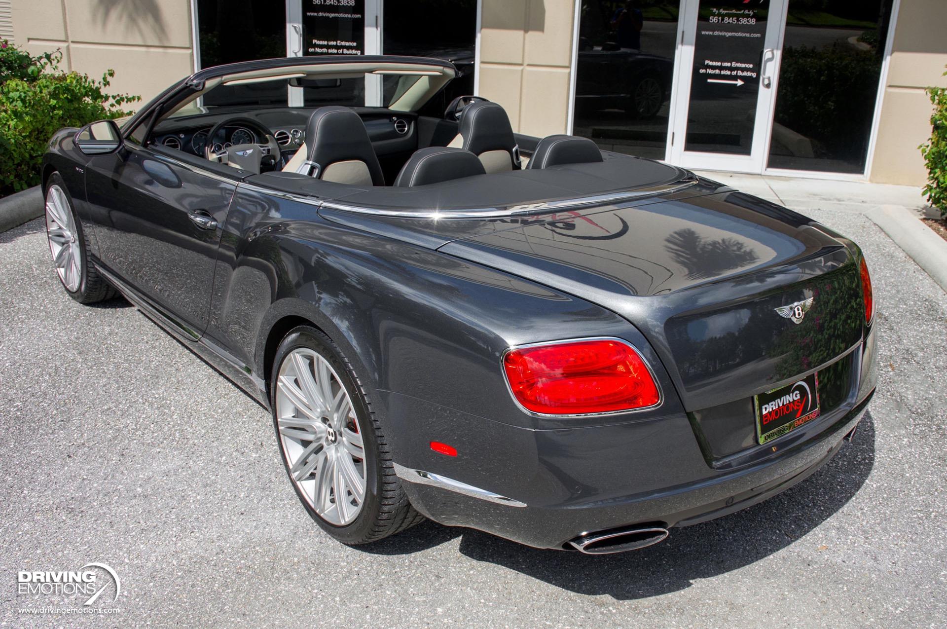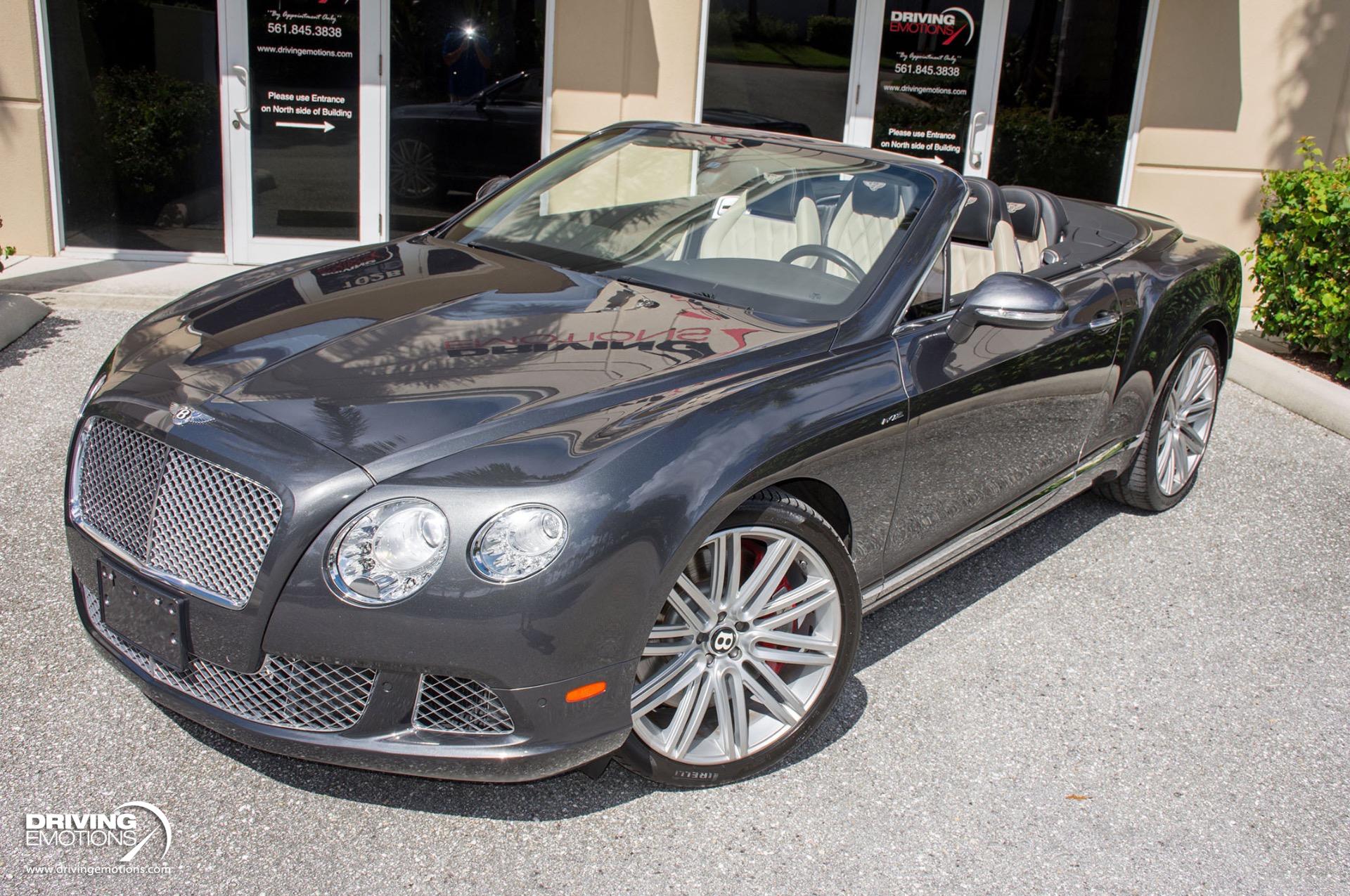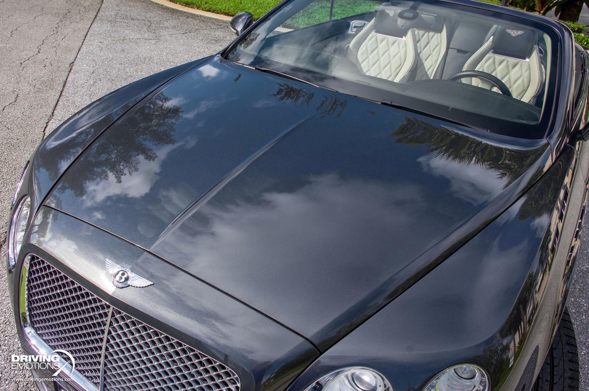 2014 Bentley Continental GTC Speed W12 Twin Turbo Convertible! Anthracite Grey with Two-Tone Beluga (Black) and Light Grey Leather Interior! This absolutely stunning exotic is a loaded vehicle and only has 31,056 miles! This Bentley GT Speed comes equipped with options and features you expect from Bentley, such as: Steering Mounted Gearshift Paddles, Air Suspension with Manual Driver Adjustment for Ride Height and Damper Settings, and more! The color combo is absolutely stunning and can only be truly appreciated in person!! This 2014 Bentley Continental GT Speed Convertible is also equipped with Bentley?s Integrated 8-Inch, High Resolution, Touch Screen Infotainment System, Bluetooth, Navigation System, Power Door Latching, Electronic Trunk Boot Closer, Keyless entry and Keyless Ignition, Rear-View Back-Up Camera, A/C and Heated Front Seats, Neck Warmers, Embroidered Bentley Emblems to Seat Facings, Quilted Diamond Stitched Seats, Contrast Stitching Steering Wheel, Carbon Fiber Veneer Interior Trim, Plus Much More! The 2014 Bentley Continental GT Speed Convertible offers technology that recognizes you, remembers your personal preferences and responds to your commands. It?s your performance vehicle, just the way you like it, every time you drive it! The Continental GT Speed combines its interior spaciousness with lavish detail. The plush materials, precise fit and finish and intuitive technology work in concert to create a truly luxurious and safe driving experience! This 2014 Bentley Continental GT Speed Convertible is one of the finest examples of its kind. Own this rare exotic and own a piece of history! Please feel free to contact our showroom with any questions at 561-845-3838. Driving Emotions.