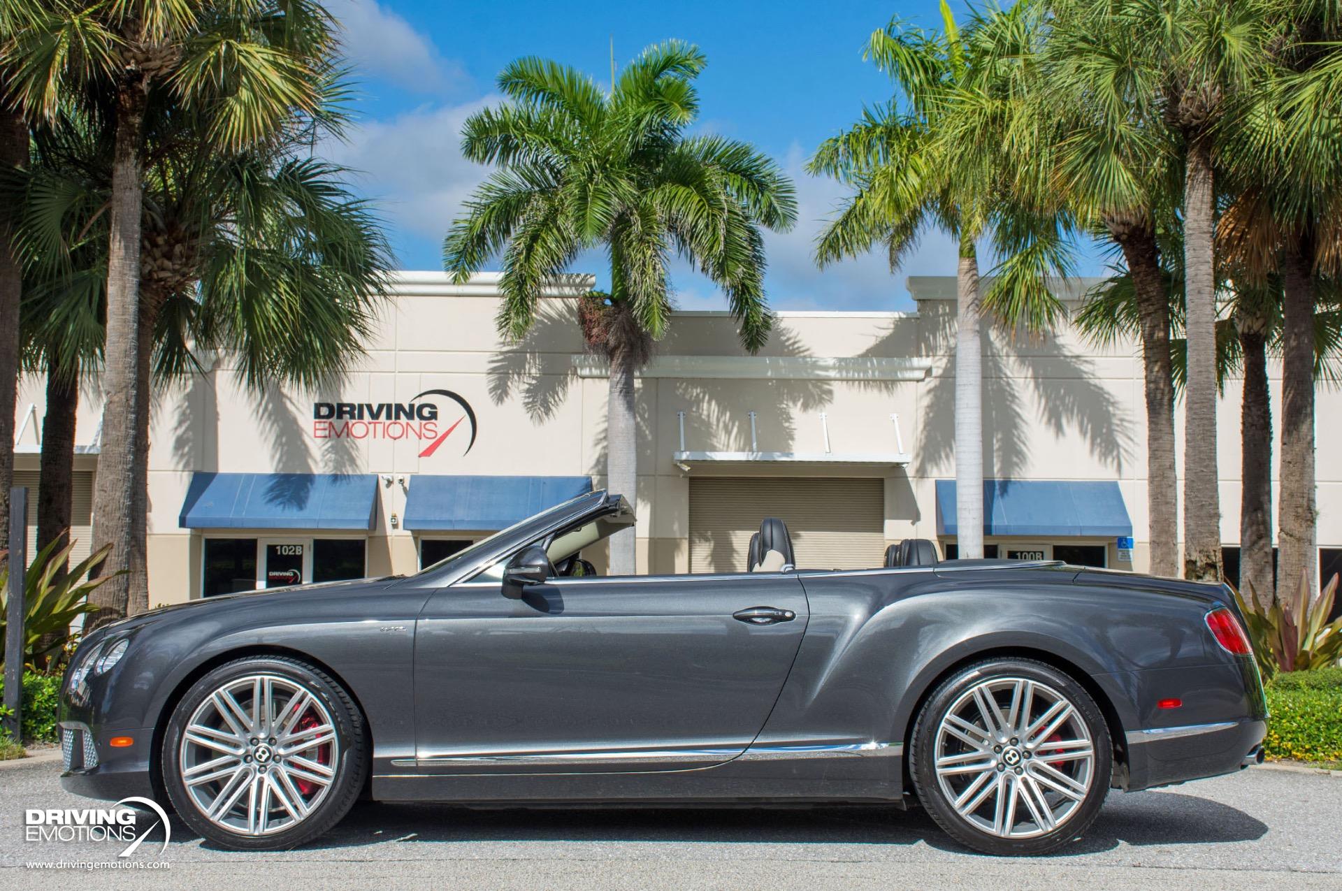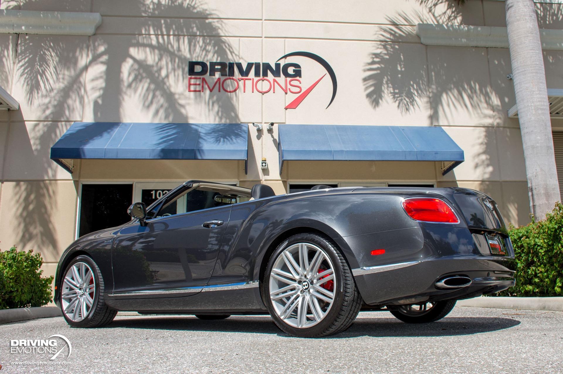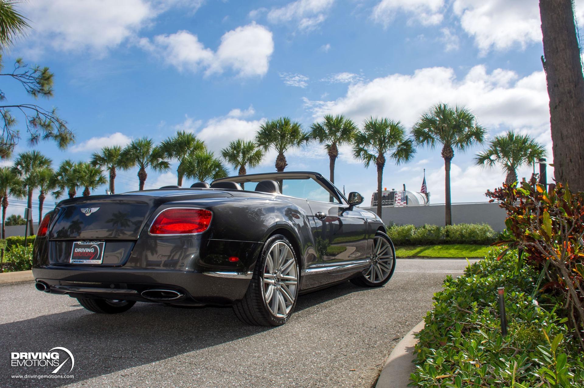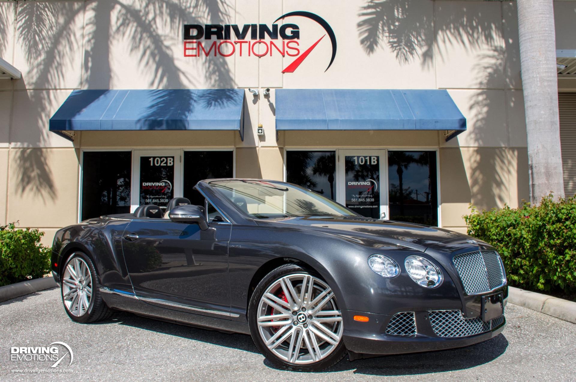 2014 Bentley Continental GTC Speed W12 Twin Turbo Convertible! Anthracite Grey with Two-Tone Beluga (Black) and Light Grey Leather Interior! This absolutely stunning exotic is a loaded vehicle and only has 31,056 miles! This Bentley GT Speed comes equipped with options and features you expect from Bentley, such as: Steering Mounted Gearshift Paddles, Air Suspension with Manual Driver Adjustment for Ride Height and Damper Settings, and more! The color combo is absolutely stunning and can only be truly appreciated in person!! This 2014 Bentley Continental GT Speed Convertible is also equipped with Bentley?s Integrated 8-Inch, High Resolution, Touch Screen Infotainment System, Bluetooth, Navigation System, Power Door Latching, Electronic Trunk Boot Closer, Keyless entry and Keyless Ignition, Rear-View Back-Up Camera, A/C and Heated Front Seats, Neck Warmers, Embroidered Bentley Emblems to Seat Facings, Quilted Diamond Stitched Seats, Contrast Stitching Steering Wheel, Carbon Fiber Veneer Interior Trim, Plus Much More! The 2014 Bentley Continental GT Speed Convertible offers technology that recognizes you, remembers your personal preferences and responds to your commands. It?s your performance vehicle, just the way you like it, every time you drive it! The Continental GT Speed combines its interior spaciousness with lavish detail. The plush materials, precise fit and finish and intuitive technology work in concert to create a truly luxurious and safe driving experience! This 2014 Bentley Continental GT Speed Convertible is one of the finest examples of its kind. Own this rare exotic and own a piece of history! Please feel free to contact our showroom with any questions at 561-845-3838. Driving Emotions.