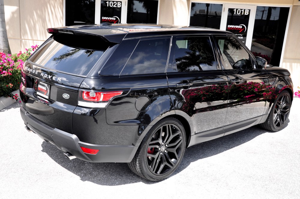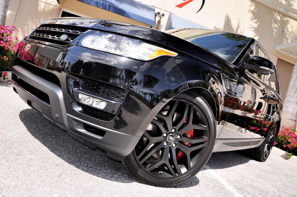 2014 Land Rover Range Rover Sport Supercharged Autobiography Edition! Santorini Black with Red Leather Interior! Loaded! This 2014 Range Rover Sport is the ultimate combination in Luxury and Performance! This Low Mile, 2014 Range Rover Sport Autobiography still carries the balance of the 4 year/50,000 mile Land Rover Factory Warranty and is in Stunning Condition!! The color combo on this Range Rover is absolutely amazing! This 2014 Range Rover Sport features a 5.0 liter 510hp V8 Engine with a Electronically Controlled Automatic Transmission that seamlessly channels the power and offers responsive acceleration and effortless torque! This Range Rover Sport comes loaded with Dual Electronically Adjustable exterior mirrors, Factory Meridian Audio System with Steering Wheel Mounted Controls, GPS Enhanced Navigation System with Touch Screen Interface and Driver Information, Home Link System, Park Distance Control, Bi-Xenon Headlamps, LED Driving Lights, Front and Rear Fog lamps, Power Open/Close Power Sunroof, Black Piano Wood details on center console, Vehicle Security System with Keyless Entry & Ignition, Surround Camera System, Autobiography Edition, and Much More!! The exceptional performance and luxury of the 2014 Range Rover Sport Supercharged Autobiography Edition is further distinguished through the elegant Green and White Land Rover Badging on the Grille and Tailgate! Theres no mistaking the Range Rover Sport Autobiography Edition from any other luxury SUVs. With its wide, muscular design articulated by strong, flared shoulders, Range Rover Sport exudes power and presence. The aerodynamic shape is enhanced by a raked roof, sculpted wheel arches, lower door finishers, giving it a dramatic sense of motion, even when standing still. Unmistakable Range Rover Sport styling cues can be seen throughout, including the floating roof and clamshell hood and the sloped rear tailgate features a power liftgate that opens and closes for easy cargo access! Please contact our experienced sales team. This Range Rover Sport Supercharged Autobiography Edition will NOT last long!! Please feel free to contact our showroom with any questions at 561-845-3838. Driving Emotions.