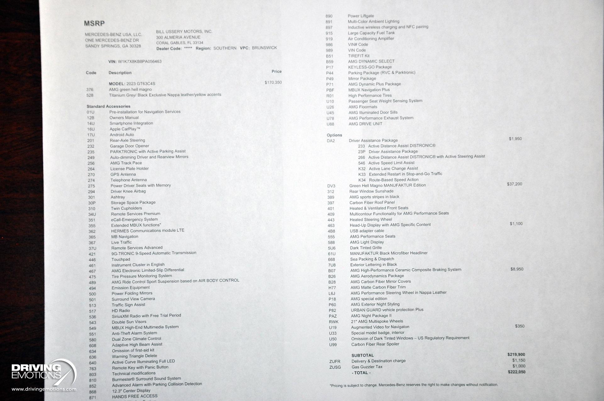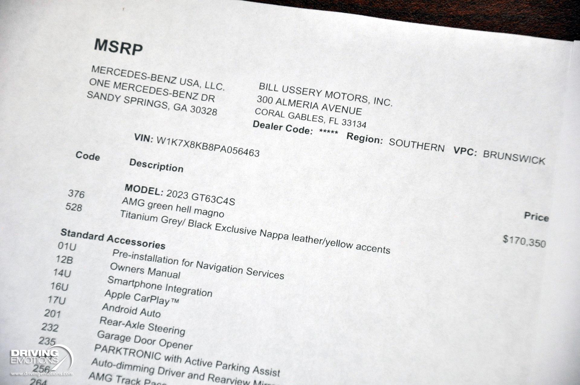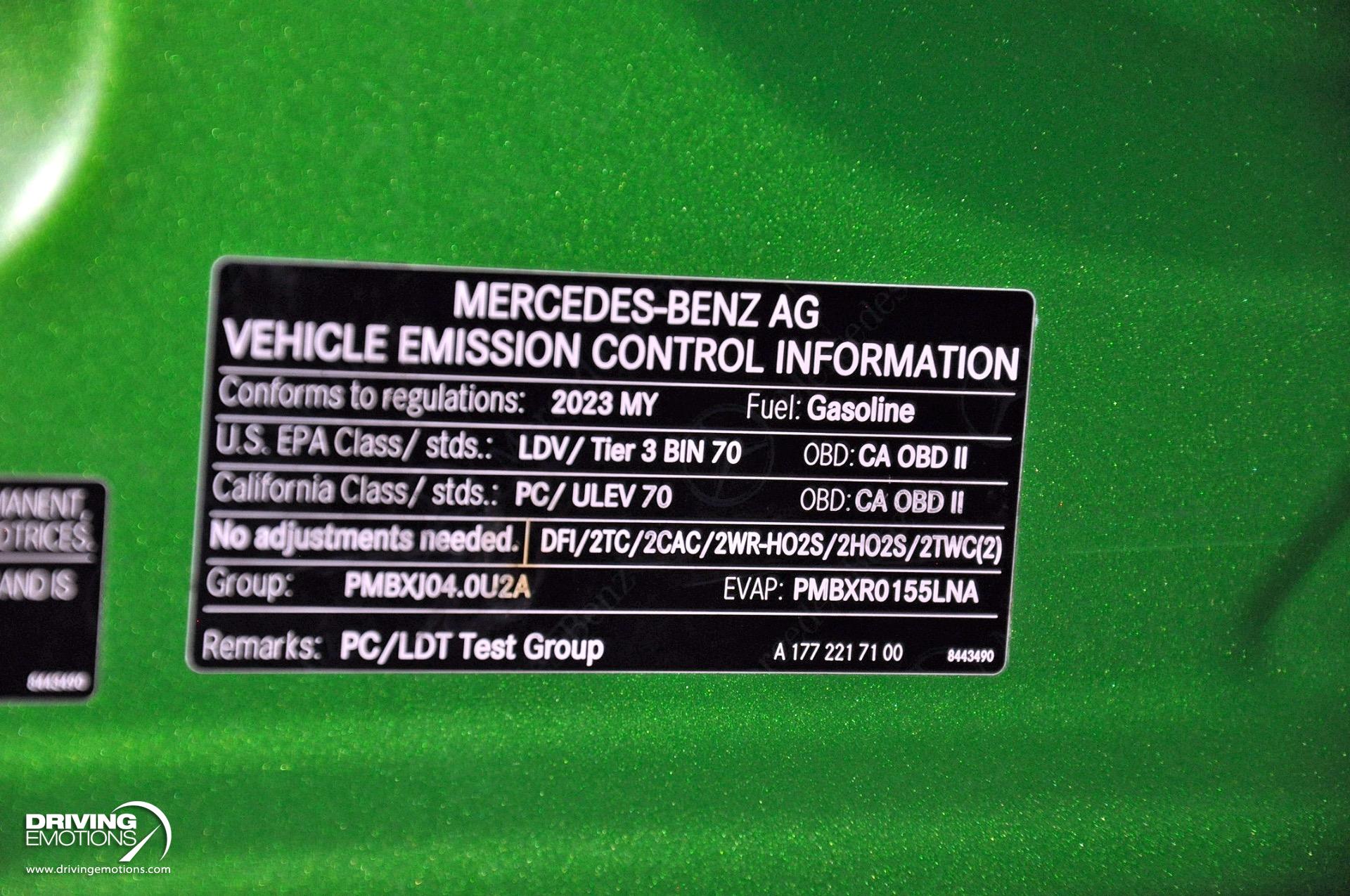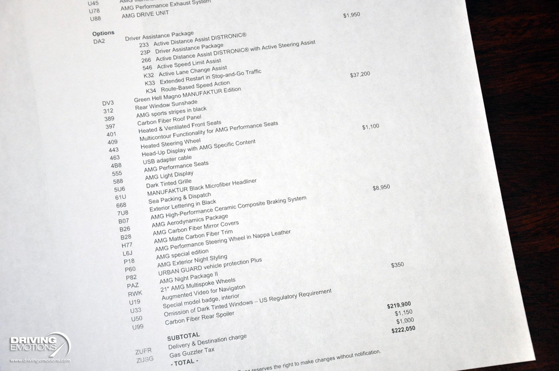 - Exterior Features : AMG Exterior Carbon Fiber Package II (Includes carbon fiber side mirror housings and rear wing spoiler.)