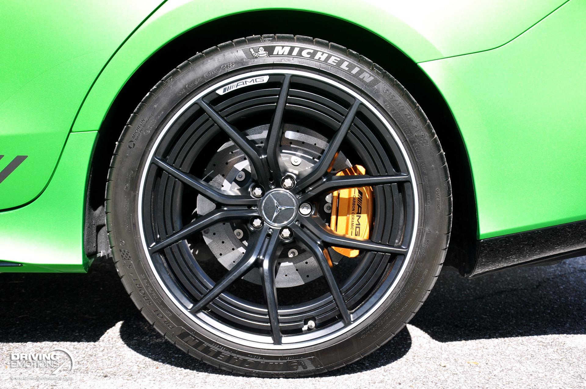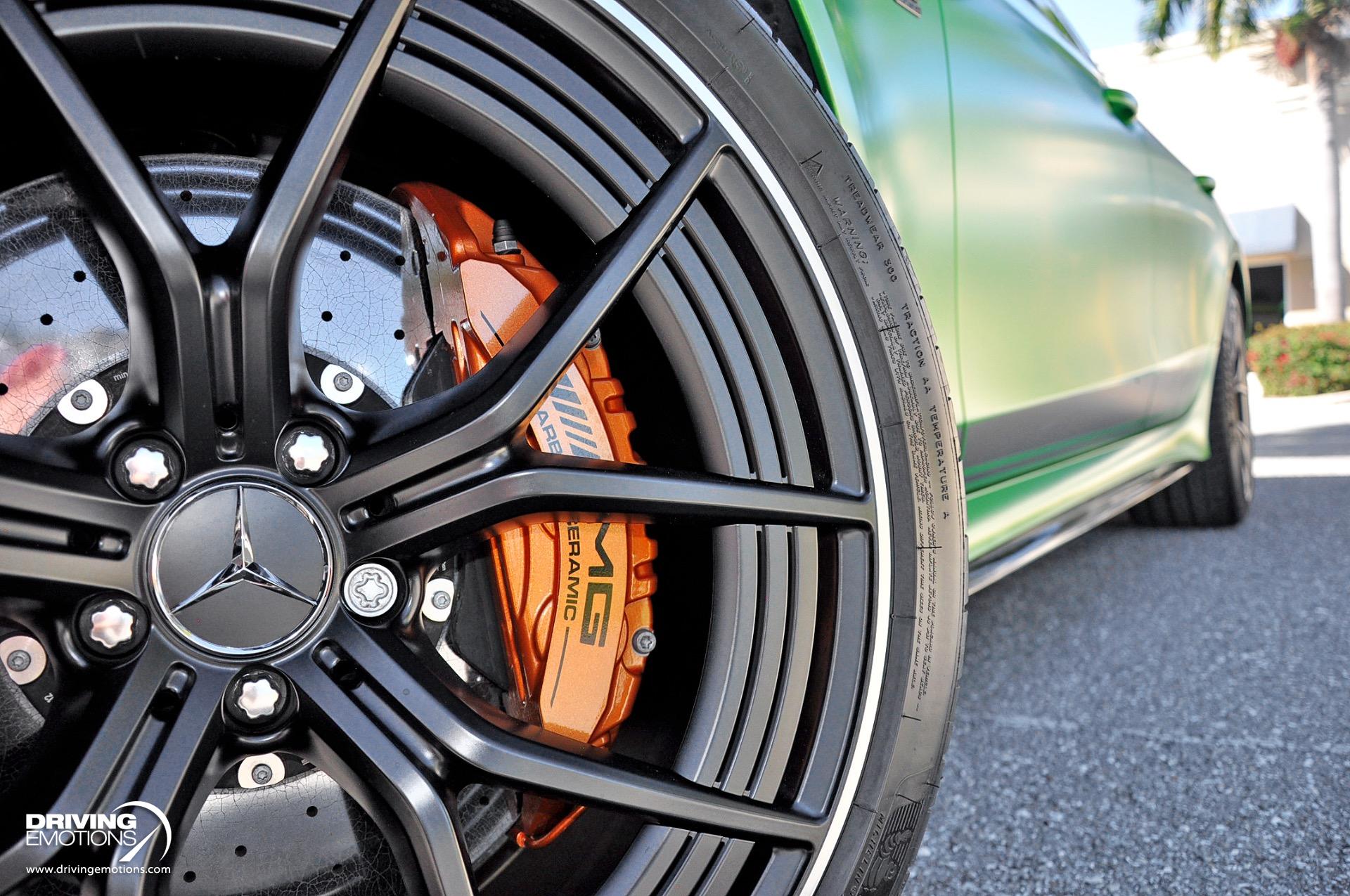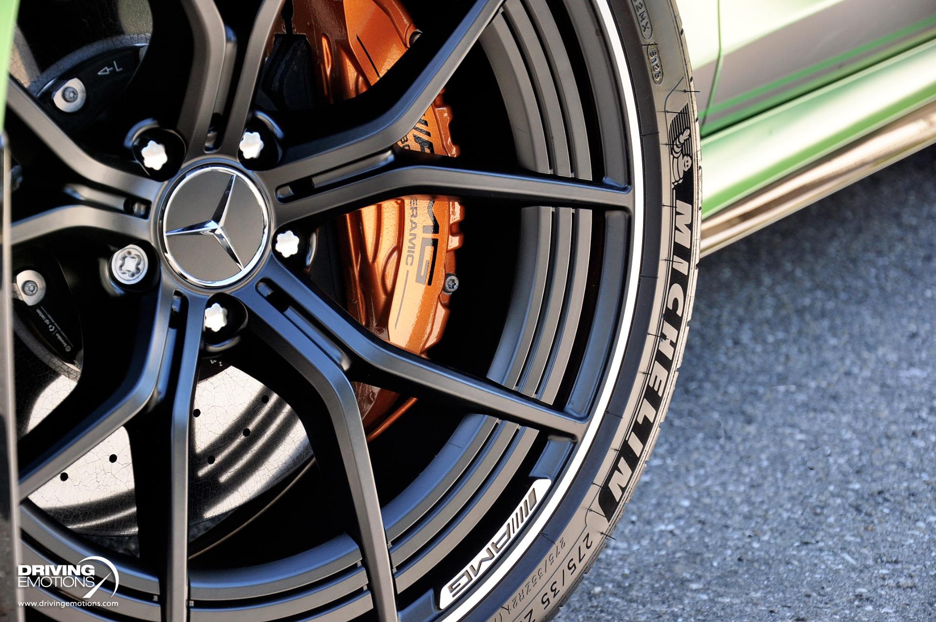- Brakes : AMG High-Performance Carbon Ceramic Braking System (Includes 15.8 x 1.5 in. front and 14.2 x 1.3 in. rear high performance carbon ceramic disc brakes with painted brake calipers.)
